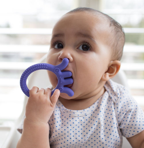A-Shaped Teether "Flexees" is designed by a pediatric dentist! A super-durable teether that features a variety of texture combinations to stimulate the mouth and gums of your little one.