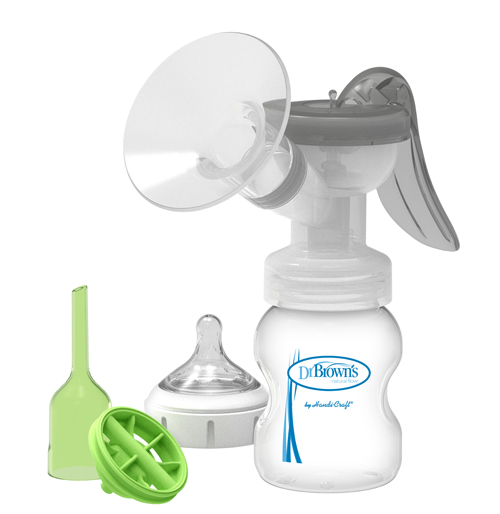 - Comes with (1) Manual Breast Pump, (1) 5 oz/150 ml Dr. Brown’s™ Options+™ Wide-Neck Bottle with Level 1 Nipple, (1) Wide-Neck Storage Travel Cap, (1) Cleaning Brush
