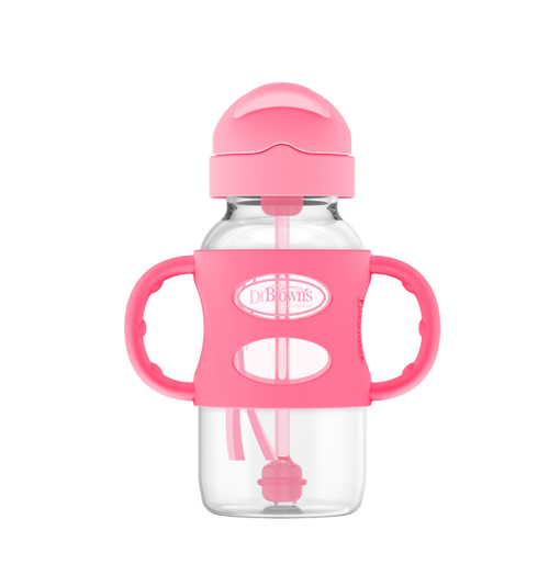 When baby is ready to learn straw sipping skills, take baby steps with the Dr. Brown’s™ Milestones™ Wide-Neck Sippy Straw Bottle. Baby can continue to use the bottle they love while learning new sipping skills. The soft silicone straw is weighted so baby can tilt and sip while learning upright straw skills. Soft yet sturdy silicone handles make gripping easy and help teach baby new motor skills. A sliding cap keeps messes contained when closed and offers spill-proof travel. Both the sippy straw cap and silicone handles fit all Dr. Brown’s™ Options+™ Wide-Neck 9oz/270mL baby bottles and sippy spout bottles, meaning you can teach baby many new sipping skills with the same bottle! Dishwasher (top rack) and sterilizer safe. BPA free. 6m+.