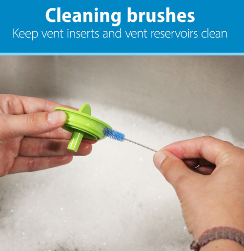 The Dr. Brown Cleaning Brushes are for use with all Dr. Browns Natural Flow baby bottles. These Dr. Brown Cleaning Brushes are the same exact pieces that come with each Dr. Browns Natural Flow baby bottle and are meant to replace worn or lost brushes. These Dr. Brown Cleaning Brushes help keep the Dr. Browns vent inserts and vent reservoirs clean and clear of blockage so the patented internal venting system functions properly.The Dr. Brown Cleaning Brushes come in a pack of 4.