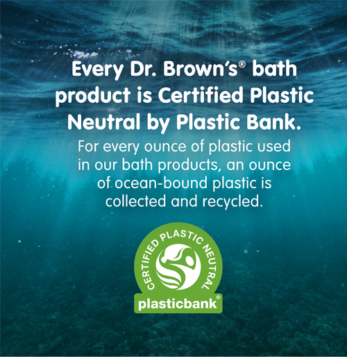 - PLASTIC NET-ZERO. Dr. Brown's Baby Bath Essential items are Plastic Net-Zero in collaboration with Plastic Bank. We've removed the equivalent amount of plastic from the environment that's used in this product, leaving the oceans better than we found them.