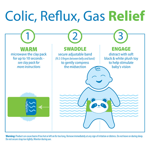 - Heated tummy wrap relieves pain associated with colic, reflux and gas