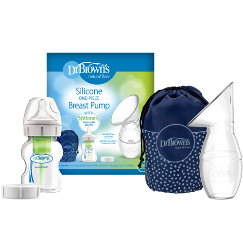 No more wasted breast milk! The Dr. Brown’s™Silicone One-Piece Breast Pump uses hands-free, gentle suction to collect and saveevery last drop.Using soft suction to draw out milk, the SiliconeOne-Piece Breast Pump is yoursilentcompanion to catch leaking milk while breastfeeding. Simply place it on your breast, squeeze the base of the pump once to create gentle suction, and let it go to work.It’s hands-free milk collection!The 100% siliconematerialis softagainst your skinand conforms to breasts of every shape and size. An easy-pour design ensuresyou can transfer your breast milk into the included Dr. Brown’s™ collection bottle and storeusingthe secure storage cap, allwithout losing a drop. The portable and practical design of this milk saver–along with the included drawstring bag –makes it simple to take on the go to pump andrelieve engorgement. To use it as a pump, just gently and slowly squeeze and release for more suction power.Feed on thespot with the included Dr. Brown’s™ Options+™ Anti-Colic Wide-Neck Bottlefeaturing the breast-like nipple. Dishwasher (top rack) and sterilizer safe. BPA Free.