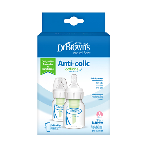 2 oz/60 ml PP Narrow Options+ Bottle, 2-Pack w/ Preemie Nipple