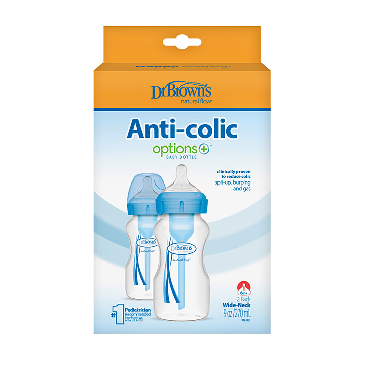 PP W-N Anti-Colic Options+ Baby Bottle, BLUE Gift Set (2x270 & 1x150 mL bottles, 1 bottle brush, 1 pacifier, 2 cleaning brushes)