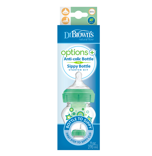 9 oz/270 mL PP W-N Options+ Green Stars Bottle w/ Sippy Spout (+L3 Nipple in Bottle), 1-Pack