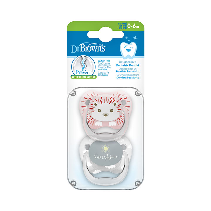 PreVent PRINTED SHIELD Soother - Stage 1, Pink & Gray, 2-Pack